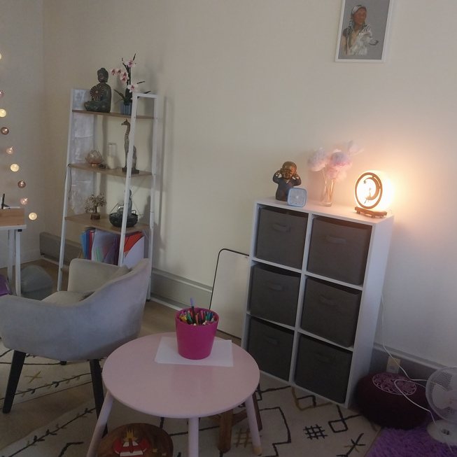 J'accueille les enfants en séance individuelle ou en groupe. J'adapte mes séances, j'utilise des supports différents, je passe par le ludique, la détente, l'écoute...